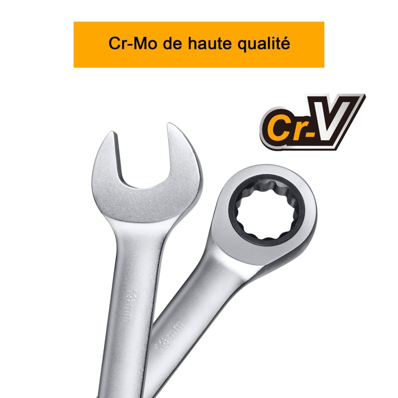 • [Traitement des matériaux] Rench: Ratchet CR-V: La surface CR-MO est sablée, a une résistance à l’abrasion et une résistance à la corrosion et est difficile à glisser.