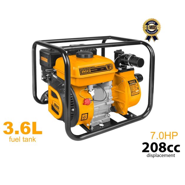 • La pompe à eau essence INGCO GWP202 est l’outil idéal pour tous vos besoins de pompage, que ce soit pour l’irrigation de vos cultures, l’évacuation d’eau, ou tout autre usage nécessitant un transfert fluide et rapide. Ne manquez pas l’occasion de vous procurer cette pompe à eau polyvalente, performante et durable.